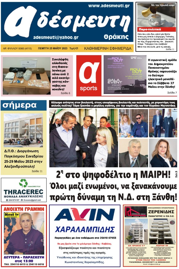 ΠΡΩΤΟΣΕΛΙΔΟ ΠΕΜΠΤΗ 25 ΜΑΪΟΥ 2023