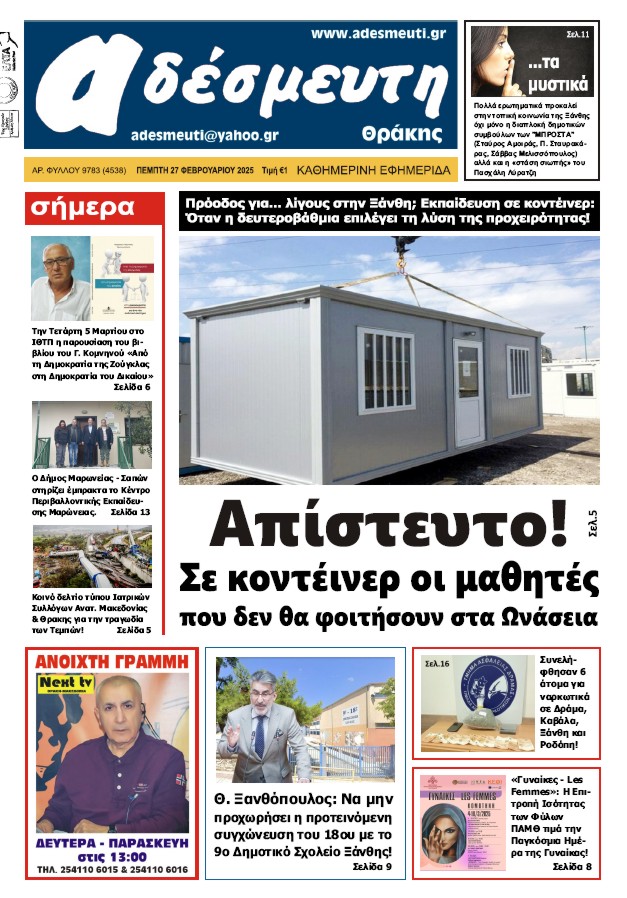 ΠΡΩΤΟΣΕΛΙΔΟ ΠΕΜΠΤΗ 27 ΦΕΒΡΟΥΑΡΙΟΥ 2025
