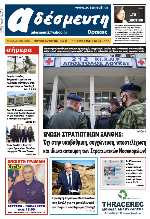ΠΡΩΤΟΣΕΛΙΔΟ ΠΕΜΠΤΗ 28 ΜΑΡΤΙΟΥ 2024