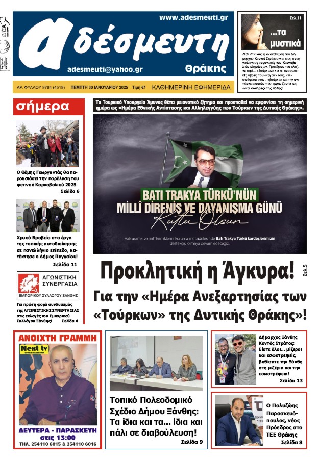 ΠΡΩΤΟΣΕΛΙΔΟ ΠΕΜΠΤΗ 30 ΙΑΝΟΥΑΡΙΟΥ 2025