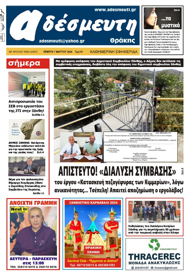 ΠΡΩΤΟΣΕΛΙΔΟ ΠΕΜΠΤΗ 7 ΜΑΡΤΙΟΥ 2024