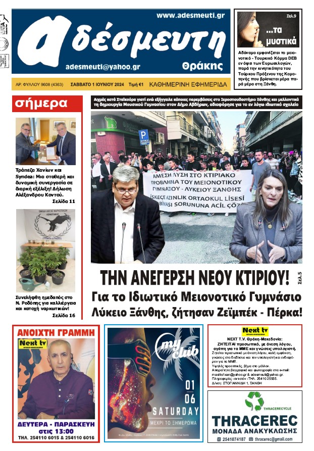 ΠΡΩΤΟΣΕΛΙΔΟ ΣΑΒΒΑΤΟ 1 ΙΟΥΝΙΟΥ 2024