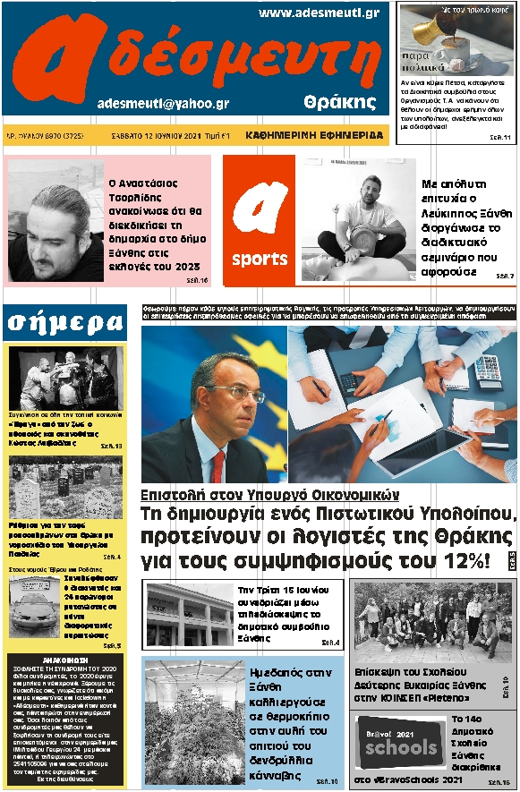 ΠΡΩΤΟΣΕΛΙΔΟ ΣΑΒΒΑΤΟ 12 ΙΟΥΝΙΟΥ 2021