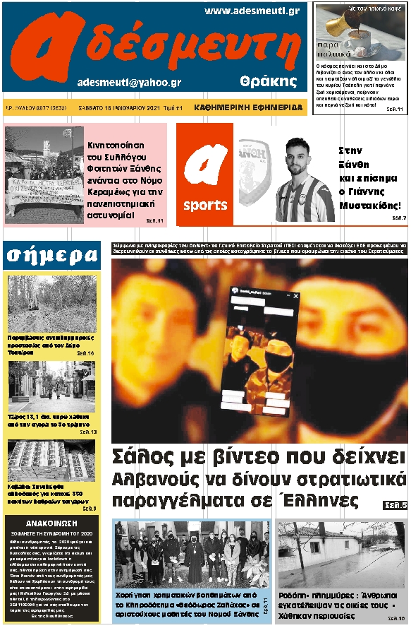 ΠΡΩΤΟΣΕΛΙΔΟ ΣΑΒΒΑΤΟ 16 ΙΑΝΟΥΑΡΙΟΥ 2021