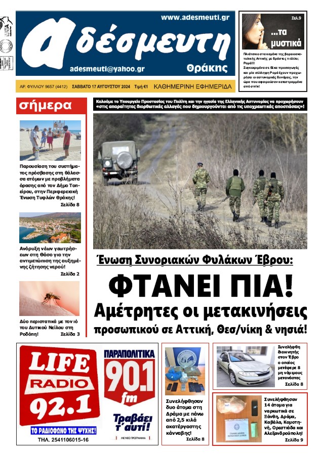 ΠΡΩΤΟΣΕΛΙΔΟ ΣΑΒΒΑΤΟ 17 ΑΥΓΟΥΣΤΟΥ 2024