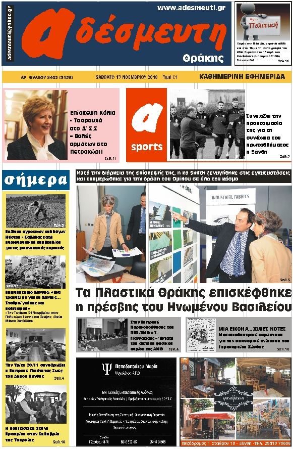 ΠΡΩΤΟΣΕΛΙΔΟ ΣΑΒΒΑΤΟ 17 ΝΟΕΜΒΡΙΟΥ 2018