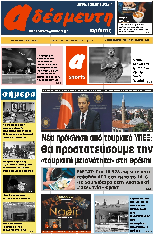 ΠΡΩΤΟΣΕΛΙΔΟ ΣΑΒΒΑΤΟ 19 ΙΑΝΟΥΑΡΙΟΥ 2019