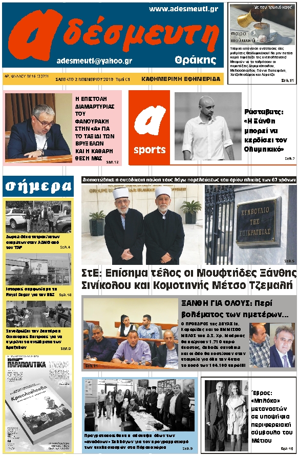 ΠΡΩΤΟΣΕΛΙΔΟ ΣΑΒΒΑΤΟ 2 ΝΟΕΜΒΡΙΟΥ