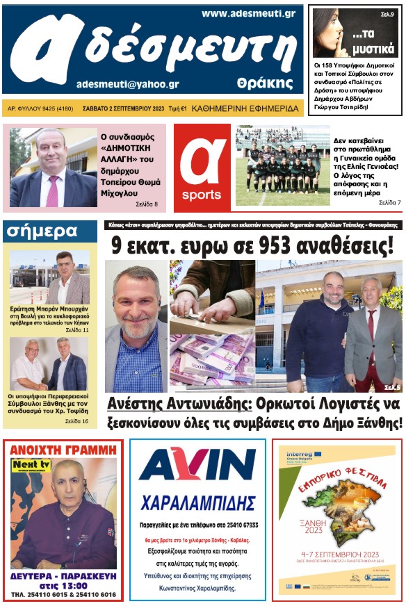 9 εκατ. ευρω σε 953 αναθέσεις! Ανέστης Αντωνιάδης: Ορκωτοί Λογιστές να ξεσκονίσουν όλες τις συμβάσεις στο Δήμο Ξάνθης!