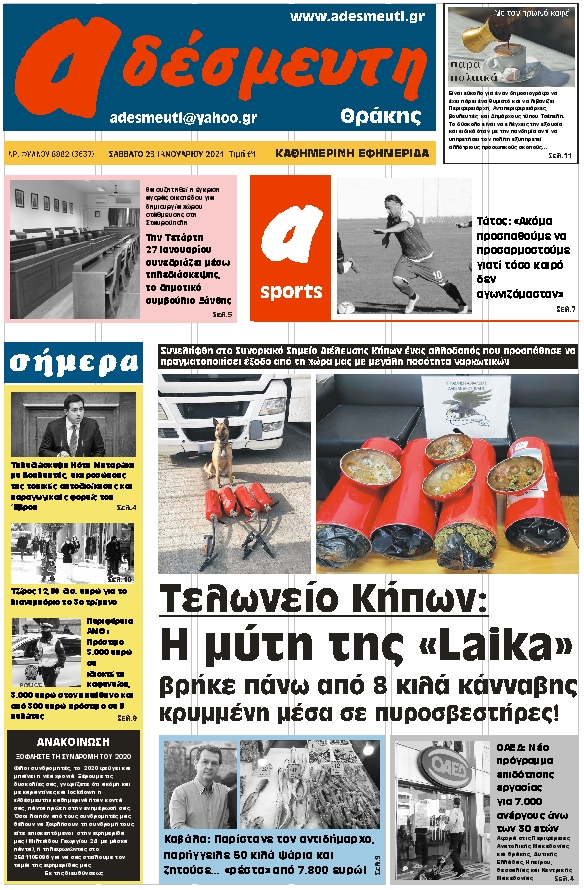 ΠΡΩΤΟΣΕΛΙΔΟ ΣΑΒΒΑΤΟ 23 ΙΑΝΟΥΑΡΙΟΥ 2021
