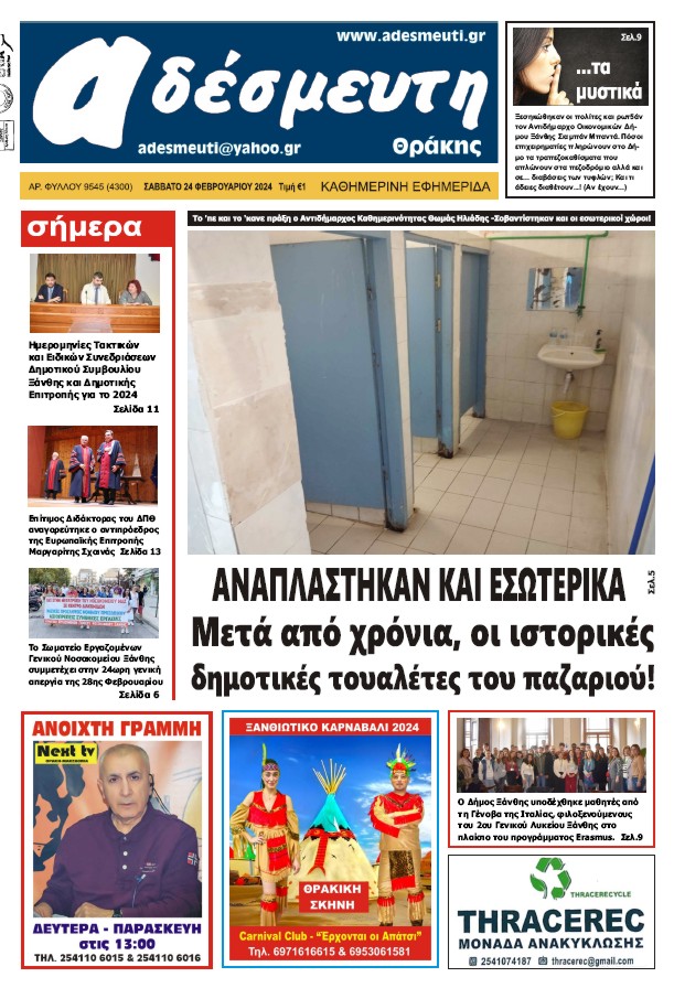 ΠΡΩΤΟΣΕΛΙΔΟ ΣΑΒΒΑΤΟ 24 ΦΕΒΡΟΥΑΡΙΟΥ 2024