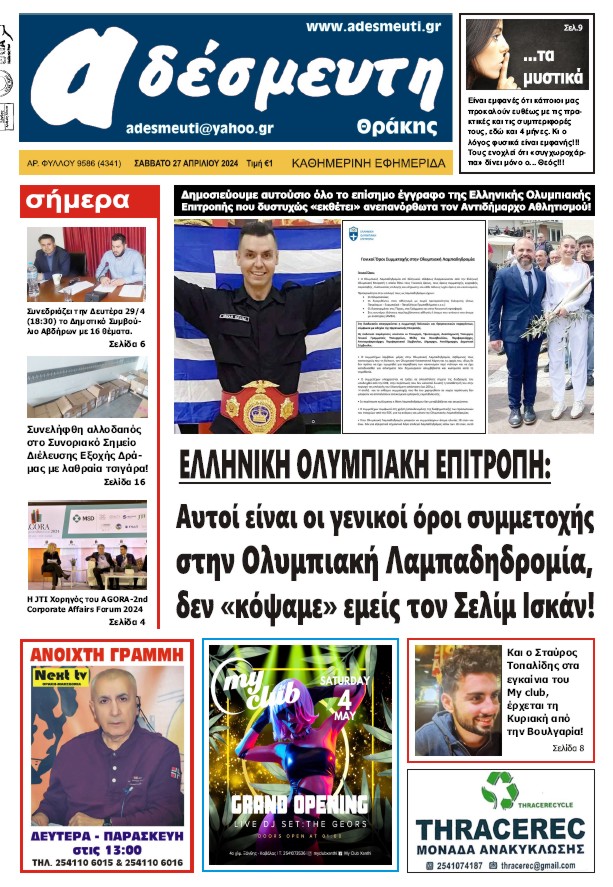 ΠΡΩΤΟΣΕΛΙΔΟ ΣΑΒΒΑΤΟ 27 ΑΠΡΙΛΙΟΥ 2024