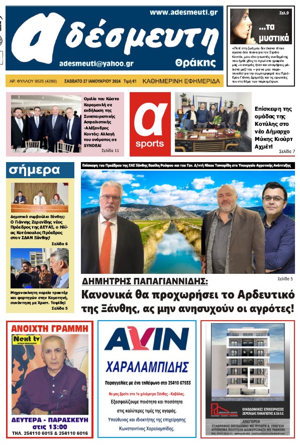 ΠΡΩΤΟΣΕΛΙΔΟ ΣΑΒΒΑΤΟ 27 ΙΑΝΟΥΑΡΙΟΥ 2024