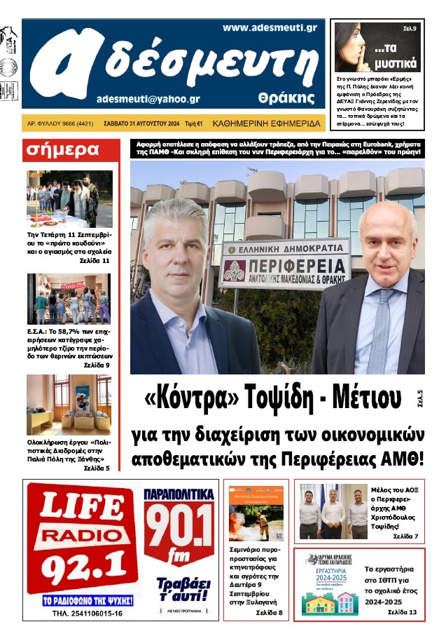 ΠΡΩΤΟΣΕΛΙΔΟ ΣΑΒΒΑΤΟ 31 ΑΥΓΟΥΣΤΟΥ 2024