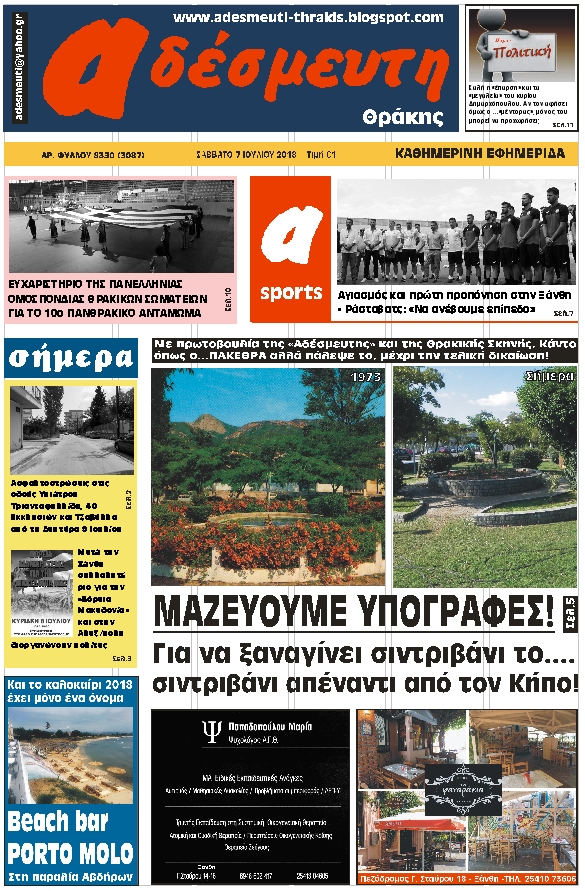 ΠΡΩΤΟΣΕΛΙΔΟ ΣΑΒΒΑΤΟ 7 ΙΟΥΛΙΟΥ 2018
