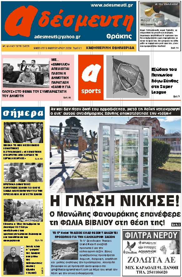 ΠΡΩΤΟΣΕΛΙΔΟ ΣΑΒΒΑΤΟ 8 ΦΕΒΡΟΥΑΡΙΟΥ 2020