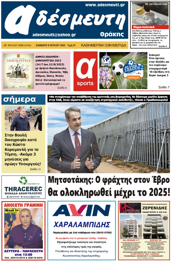 ΠΡΩΤΟΣΕΛΙΔΟ ΣΑΒΒΑΤΟ 8 ΙΟΥΛΙΟΥ 2023