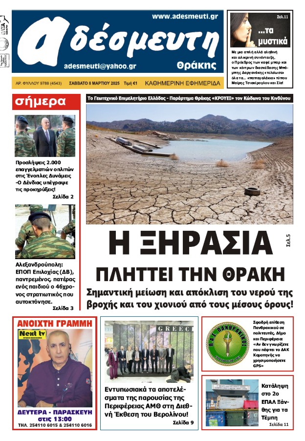 ΠΡΩΤΟΣΕΛΙΔΟ ΣΑΒΒΑΤΟ 8 ΜΑΡΤΙΟΥ 2025