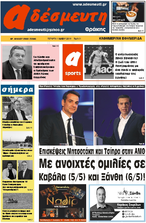 ΠΡΩΤΟΣΕΛΙΔΟ ΤΕΤΑΡΤΗ 1 ΜΑΪΟΥ 2019