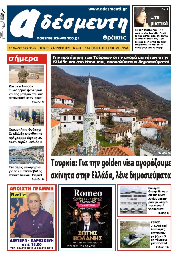ΠΡΩΤΟΣΕΛΙΔΟ ΤΕΤΑΡΤΗ 2 ΑΠΡΙΛΙΟΥ 2025