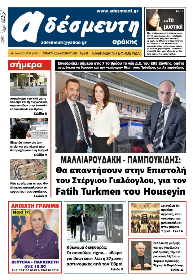ΠΡΩΤΟΣΕΛΙΔΟ ΤΕΤΑΡΤΗ 22 ΙΑΝΟΥΑΡΙΟΥ 2025