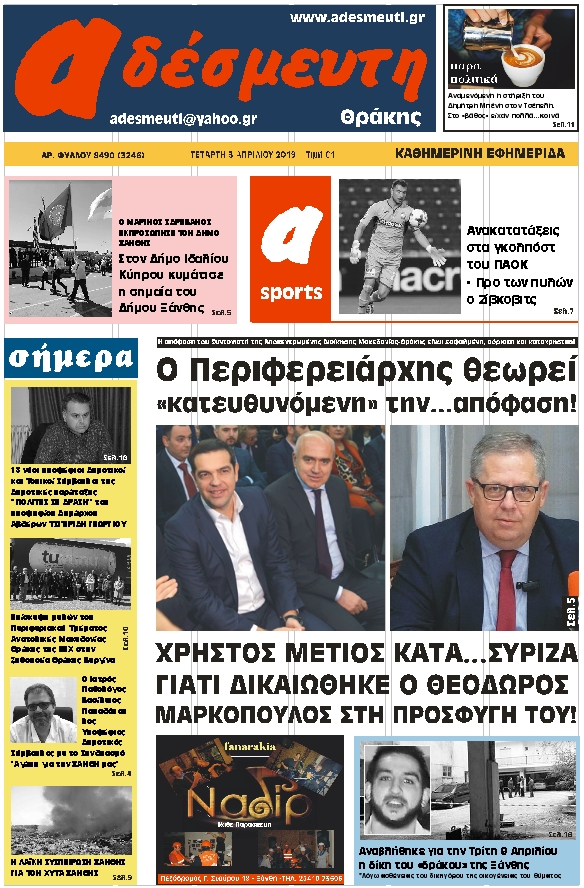 ΠΡΩΤΟΣΕΛΙΔΟ ΤΕΤΑΡΤΗ 3 ΑΠΡΙΛΙΟΥ 2019