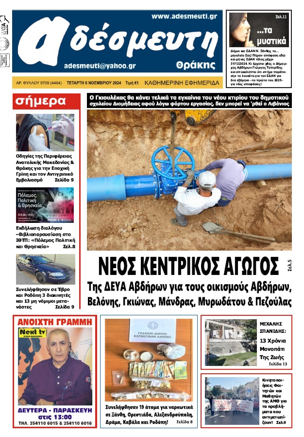 ΠΡΩΤΟΣΕΛΙΔΟ ΤΕΤΑΡΤΗ 6 ΝΟΕΜΒΡΙΟΥ 2024