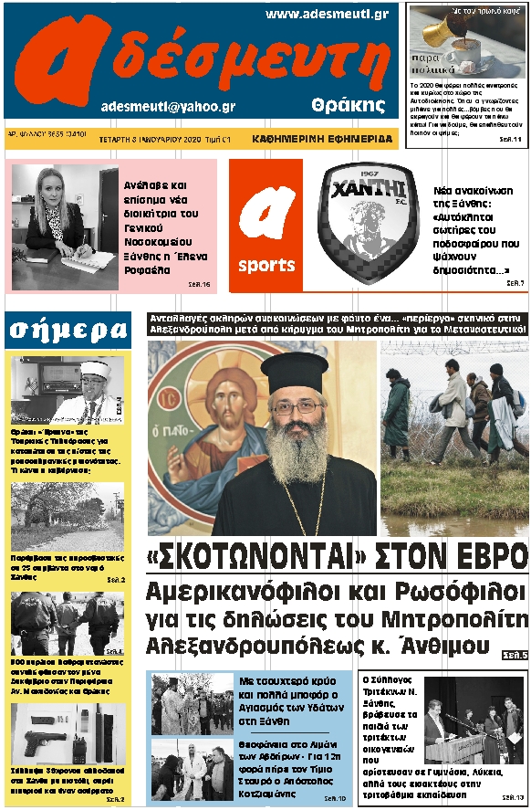 ΠΡΩΤΟΣΕΛΙΔΟ ΤΕΤΑΡΤΗ 8 ΙΑΝΟΥΑΡΙΟΥ 2020