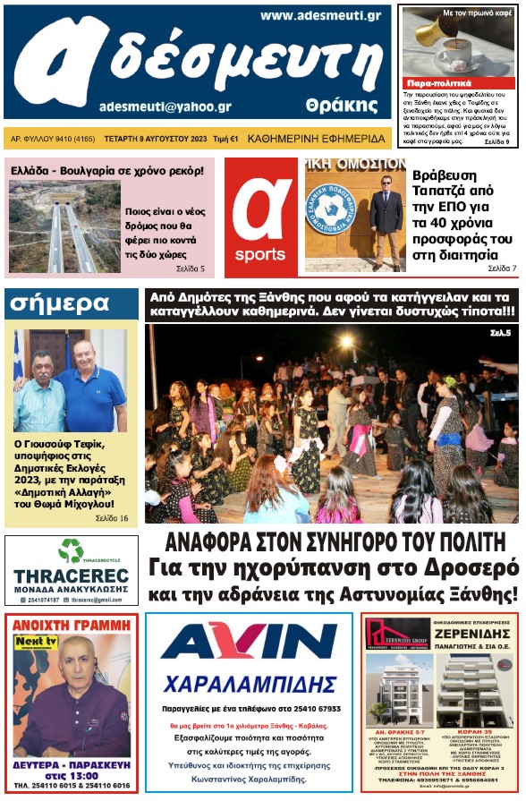 ΠΡΩΤΟΣΕΛΙΔΟ ΤΕΤΑΡΤΗ 9 ΑΥΓΟΥΣΤΟΥ 2023