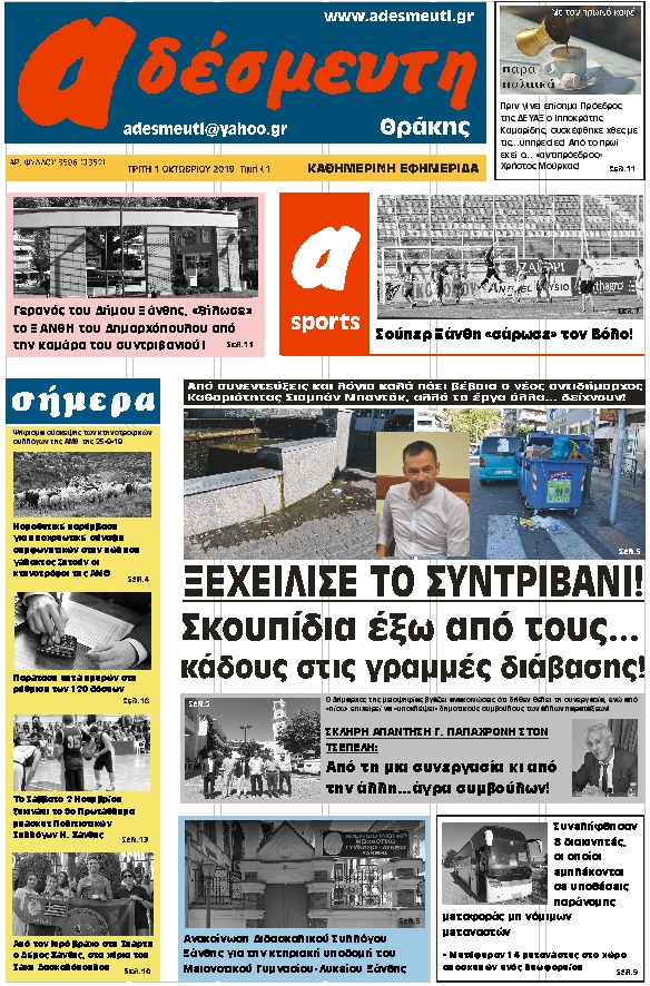 ΠΡΩΤΟΣΕΛΙΔΟ ΤΡΙΤΗ 1 ΟΚΤΩΒΡΙΟΥ 2019