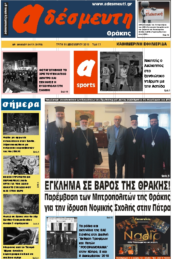 ΠΡΩΤΟΣΕΛΙΔΟ ΤΡΙΤΗ 11 ΔΕΚΕΜΒΡΙΟΥ 2018