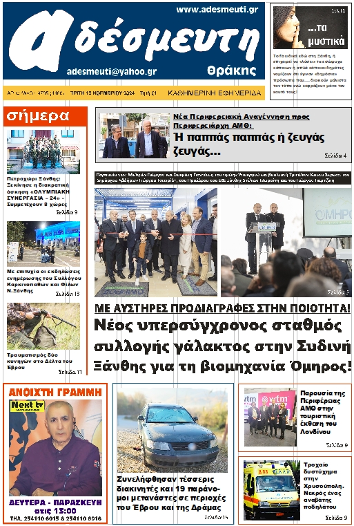 ΠΡΩΤΟΣΕΛΙΔΟ ΤΡΙΤΗ 12 ΝΟΕΜΒΡΙΟΥ 2024