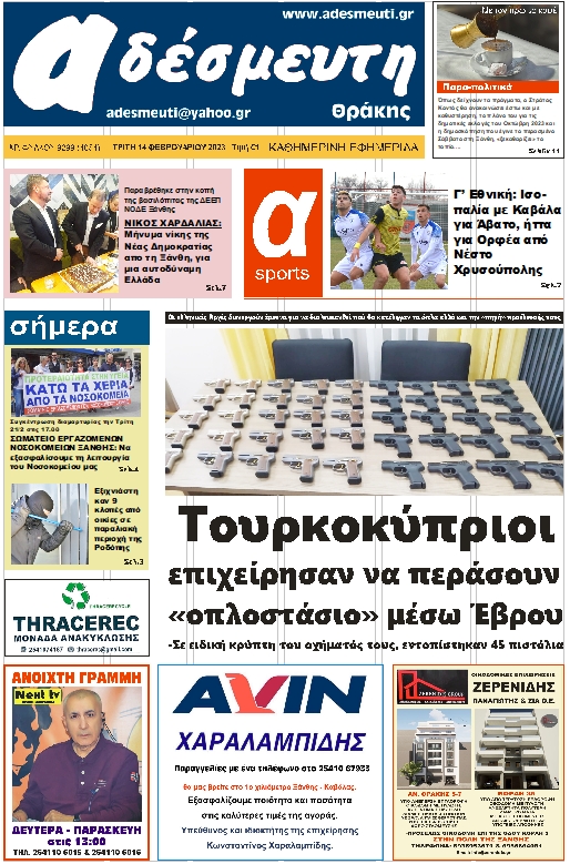 ΠΡΩΤΟΣΕΛΙΔΟ ΤΡΙΤΗ 14 ΦΕΒΡΟΥΑΡΙΟΥ 2023