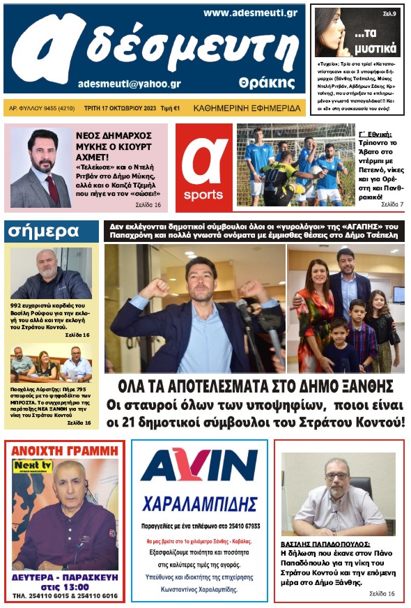 ΠΡΩΤΟΣΕΛΙΔΟ ΤΡΙΤΗ 17 ΟΚΤΩΒΡΙΟΥ 2023