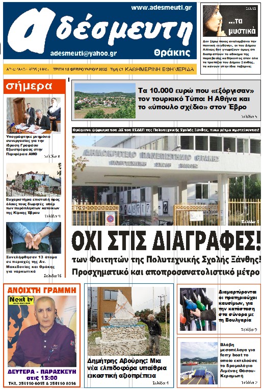 ΠΡΩΤΟΣΕΛΙΔΟ ΤΡΙΤΗ 18 ΦΕΒΡΟΥΑΡΙΟΥ 2025