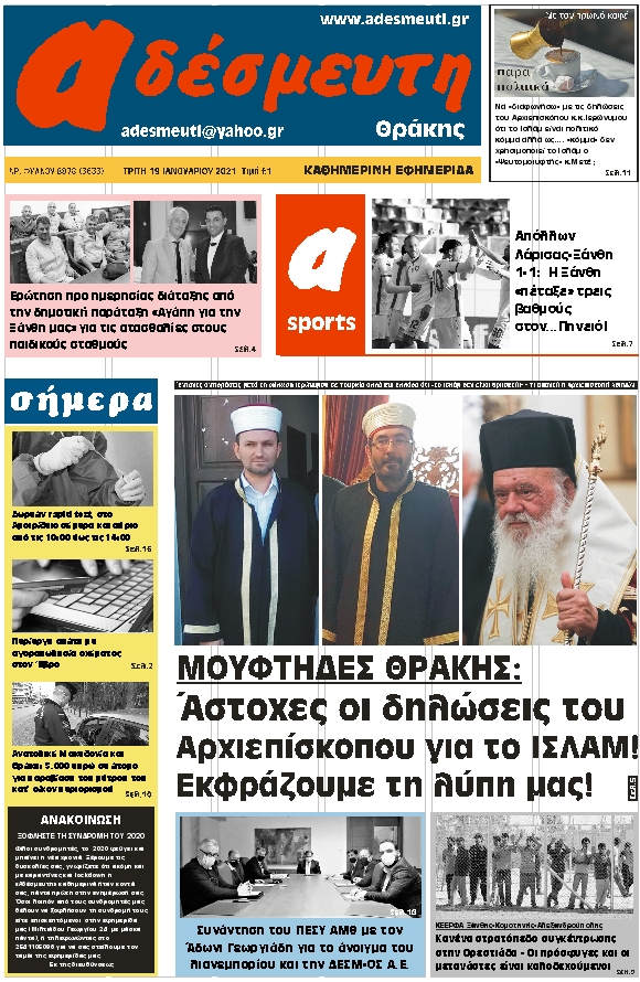 ΠΡΩΤΟΣΕΛΙΔΟ ΤΡΙΤΗ 19 ΙΑΝΟΥΑΡΙΟΥ 2021