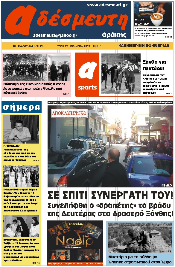 ΠΡΩΤΟΣΕΛΙΔΟ ΤΡΙΤΗ 22 ΙΑΝΟΥΑΡΙΟΥ 2019