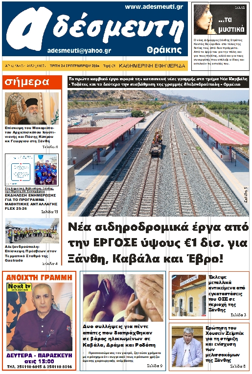 ΠΡΩΤΟΣΕΛΙΔΟ ΤΡΙΤΗ 24 ΣΕΠΤΕΜΒΡΙΟΥ 2024