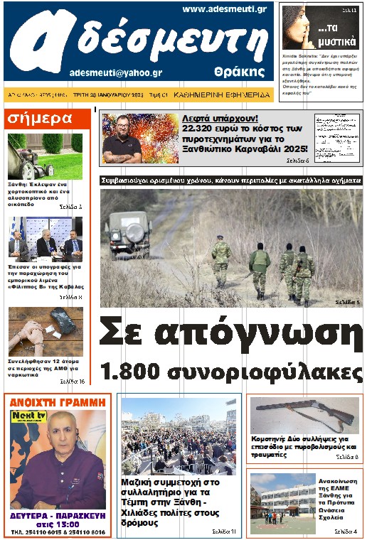 ΠΡΩΤΟΣΕΛΙΔΟ ΤΡΙΤΗ 28 ΙΑΝΟΥΑΡΙΟΥ 2025