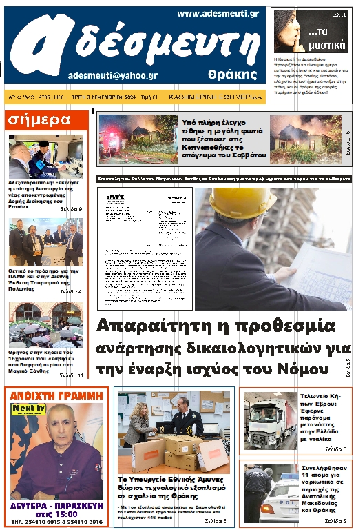 ΠΡΩΤΟΣΕΛΙΔΟ ΤΡΙΤΗ 3 ΔΕΚΕΜΒΡΙΟΥ 2024