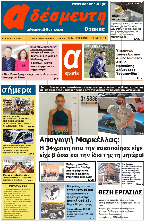 ΠΡΩΤΟΣΕΛΙΔΟ ΤΡΙΤΗ 30 ΝΟΕΜΒΡΙΟΥ 2021