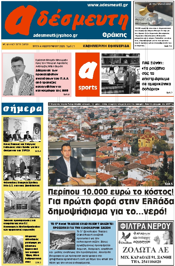 ΠΡΩΤΟΣΕΛΙΔΟ ΤΡΙΤΗ 4 ΦΕΒΡΟΥΑΡΙΟΥ 2020