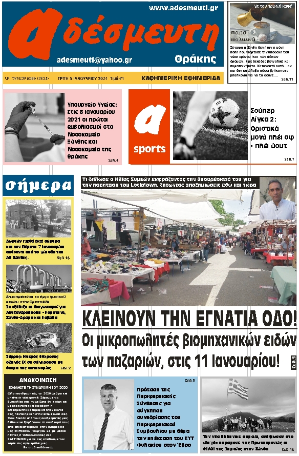 ΠΡΩΤΟΣΕΛΙΔΟ ΤΡΙΤΗ 5 ΙΑΝΟΥΑΡΙΟΥ 2021