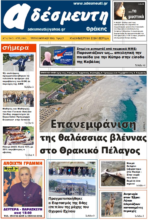 ΠΡΩΤΟΣΕΛΙΔΟ ΤΡΙΤΗ 8 ΑΠΡΙΛΙΟΥ