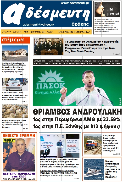 ΠΡΩΤΟΣΕΛΙΔΟ ΤΡΙΤΗ 8 ΟΚΤΩΒΡΙΟΥ 2024