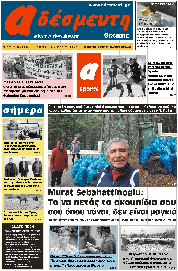 ΠΡΩΤΟΣΕΛΙΔΟ ΤΡΙΤΗ 9 ΦΕΒΡΟΥΑΡΙΟΥ 2021
