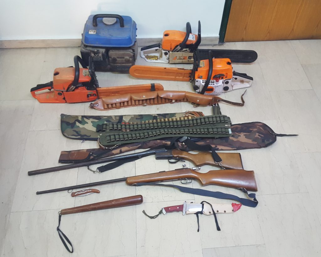 - 1 βενζινοκίνητη γεννήτρια και 3 αλυσοπρίονα, το ιδιοκτησιακό καθεστώς των οποίων ερευνάται