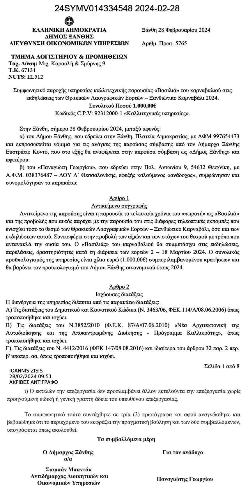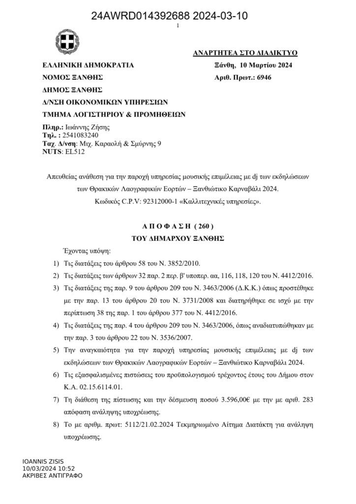 -Ντοκουμέντα. Μετά τον ντόρο, ιδού η απευθείας ανάθεση του αντιδήμαρχου Οικονομικών Δήμου Ξάνθης για τον «Βασιλιά» που μοίραζε… δώρα στο Νοσοκομείο κάνοντας ψηφοθηρία για Ασκαρίδη – Τσέπελη!