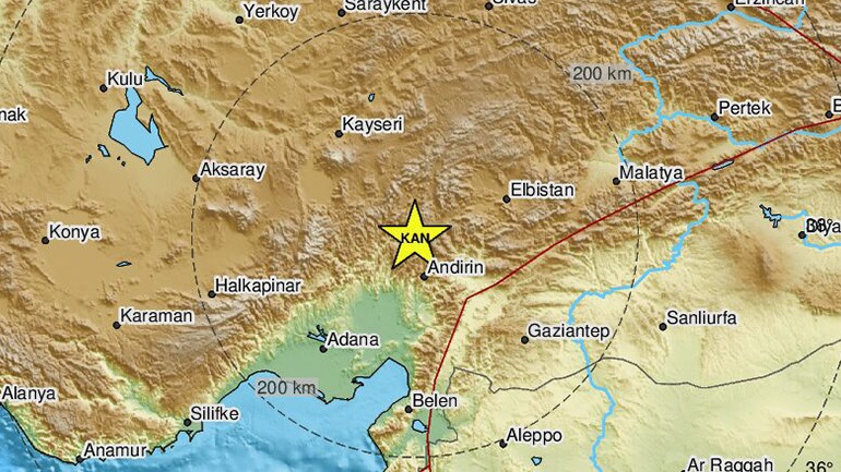 Σύμφωνα με το Ευρωμεσογειακό Ινστιτούτο, το επίκεντρο του σεισμού εντοπίζεται 25 χιλιόμετρα νοτιοδυτικά της πόλης Göksun και 68 χιλιόμετρα δυτικά – βορειοδυτικά της πόλης Kahramanmaraş, ενώ το εστιακό βάθος υπολογίζεται στα 5 χιλιόμετρα.