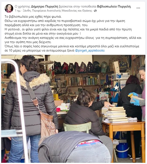 «Το βιβλιοπωλείο μας εχθές πήρε φωτιά.